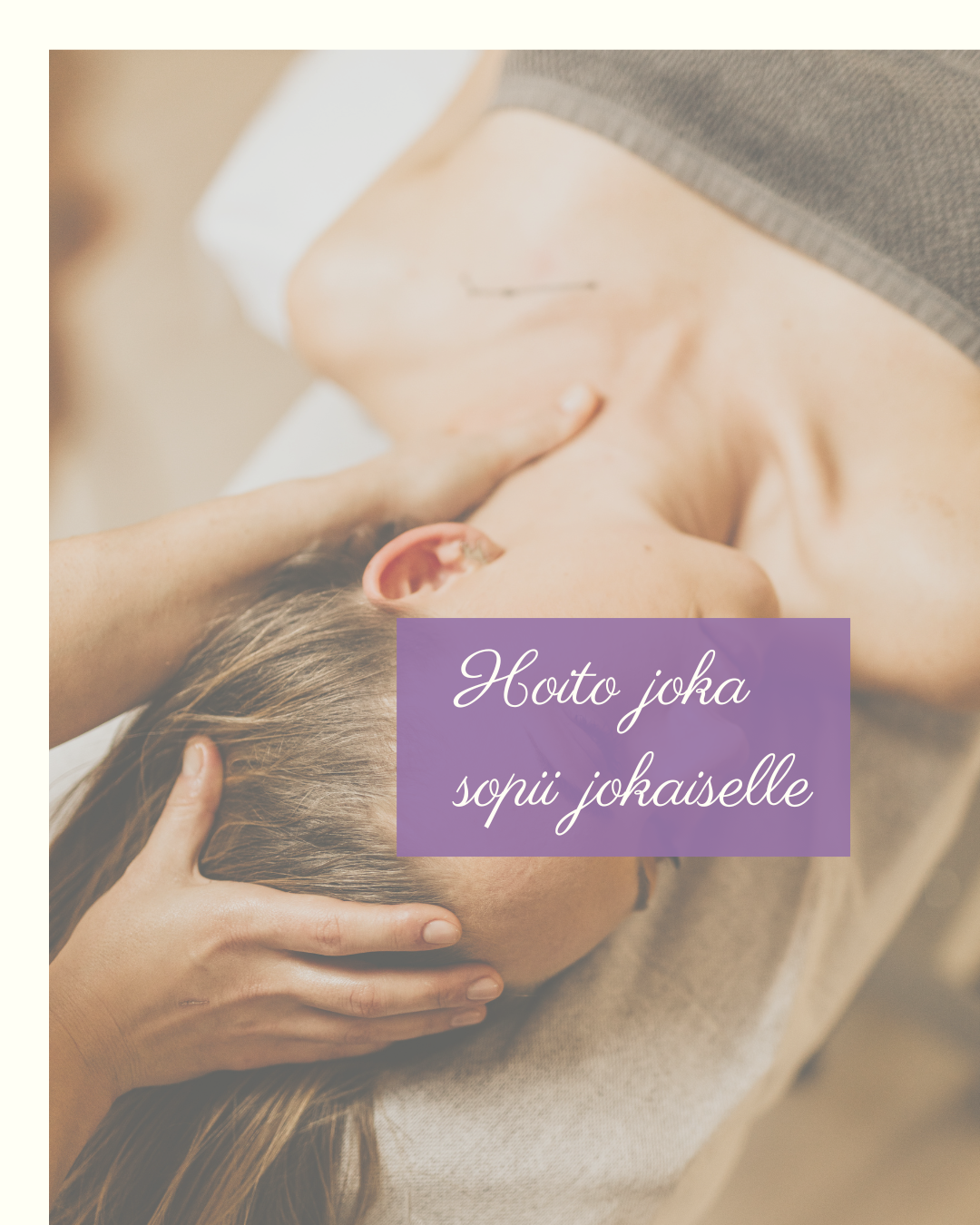 Lempeä ja kokonaisvaltainen lähestymistapamme rakentuu asiantuntevasta osaamisesta ja kehoa hoitavista luonnollisista menetelmistä. Kaikki palvelumme ovat saatavilla myös kotikäynteinä, koska tiedämme miten hektistä perhearki voi joskus olla!