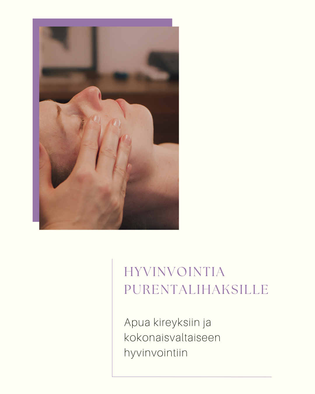 Purentalihashieronta on lempeä, mutta tehokas hoitomuoto, joka keskittyy leuan, kasvojen, niskan ja pään alueen lihasjännitysten hoitoon. Hoidossa otetaan huomioon kokonaisvaltaisesti myös esimerkiksi pallean ja lantionpohjan kireydet.