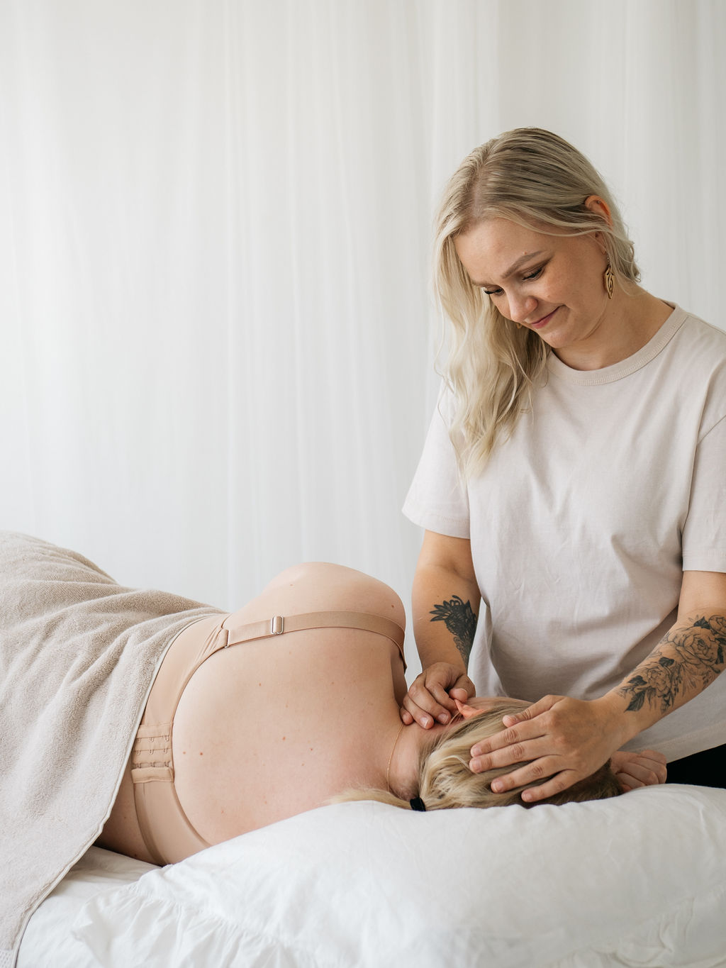 Vastaanotolla käydään läpi aina juuri sen hetken tuntemuksia ja tarpeita. Erityisesti synnytyksen lähestyessä vyöhyketerapia auttaa lievittämään kipuja, helpottamaan kehon valmistautumista ja vähentämään myös jännitystä tai pelkoa.